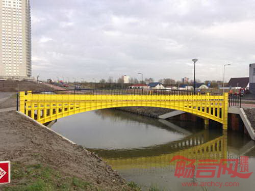 临近鹿特丹的区域Spijkenisse计划新建一个住宅开发项目,当地委员会听闻设计师的想法后,特意找到他并表示愿意使用他的设计。Stam透露,“我的桥梁造价较高,不过甲方认为这是个推广项目的好机会,因此下拨了更多预算,使项目顺利进行。”