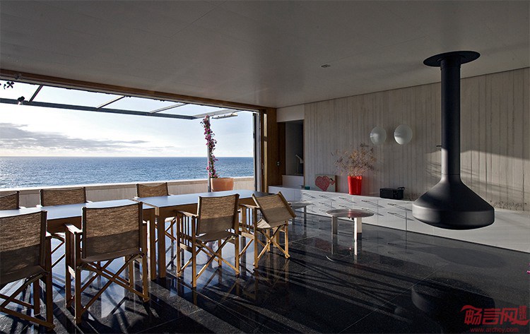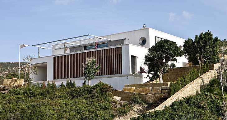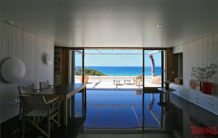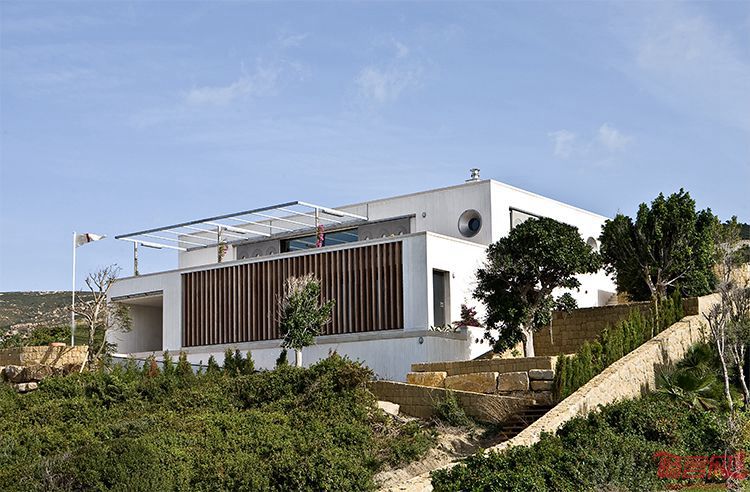 项目的出发点是升级符合场地真正尺度的建筑。方案避免了过大的结构,利用场地的优势,即现有的地形和自然植被。别墅是简洁的阶梯构造,由面朝海洋的底座支撑。两组房间围绕宽敞、开放的起居室而设,后者同露台的天井连通。两个建筑均拥有室外社交空间,包含较小的设有遮盖的天井。