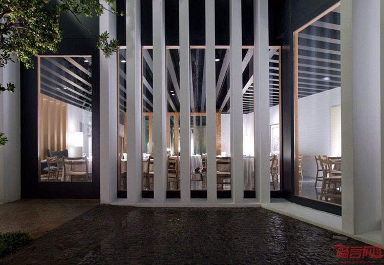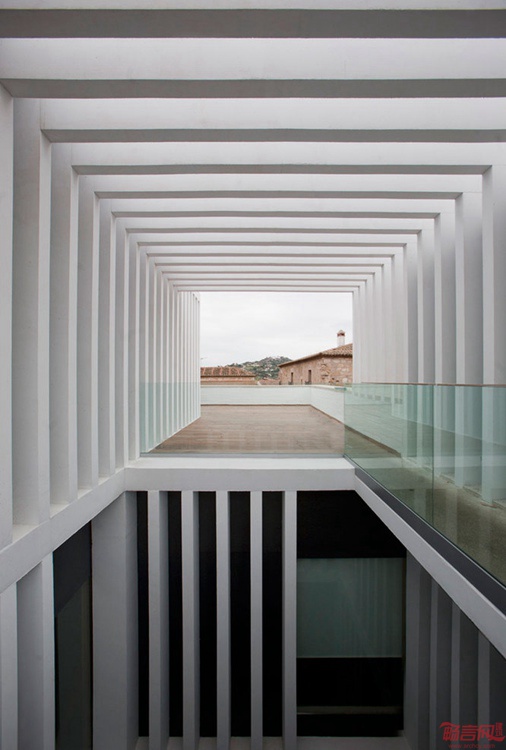 项目涵盖两个当代功能空间,分别是Atrio餐厅和只有14间客房的小型Relais Chateaux酒店。酒店前台,餐厅和厨房都在一层,客房是二楼。流通空间围绕小中庭,提供了复杂的尺度,营造了同传统住宅和老城常见宫殿的关联。