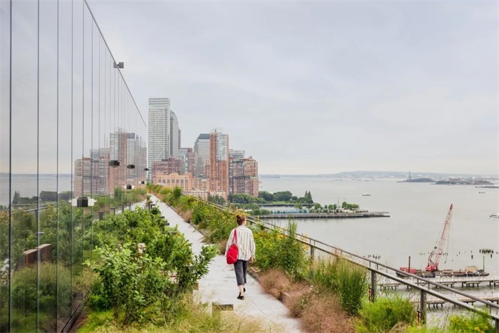 该地块相当于两个城市街区,为加强哈德逊河滨水区与西村、苏豪和哈德逊广场等附近街区的联系提供了巨大的机会。建筑北面是一个新的公共花园,南面是一条景观小巷,为哈德逊河公园创造了直接、温馨的通道,并将公共绿地延伸至西街和附近社区。