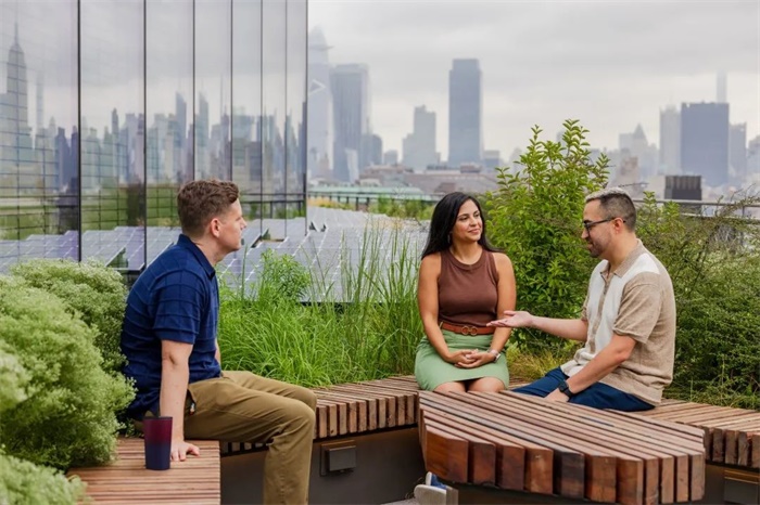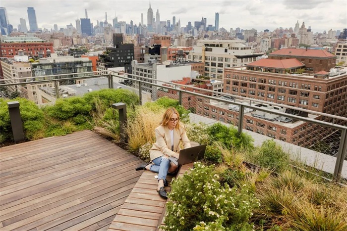 我们通过多种亲生物设计策略来设计这座建筑,优先考虑居住者的健康和福祉。采光充足的室内空间可将城市和哈德逊河的美景尽收眼底。种植的露台和车库门模糊了室内外的界限,将大楼的三个楼层包围起来,与大自然和季节循环建立了直接的联系。