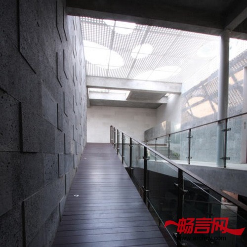 阴影成为从一个房间到另一个房间的“指示牌”,它透过金属上的孔照射在有当地色彩的石头上。太阳光线白天会从不同的地点照射进来。
