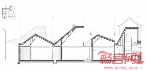 项目设计旨在通过斜屋顶达到开敞布局的目的,在创造建筑新几何结构的同时,反映当地建筑语言。新屋顶将教学厨房、教室同公共餐厅和酒吧关联起来。容纳菜园和历史院墙的庭院如今成为了辅助空间。