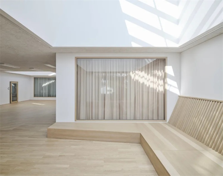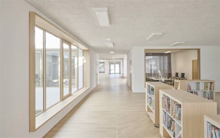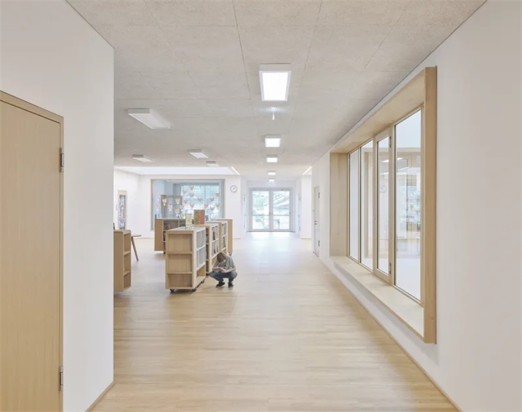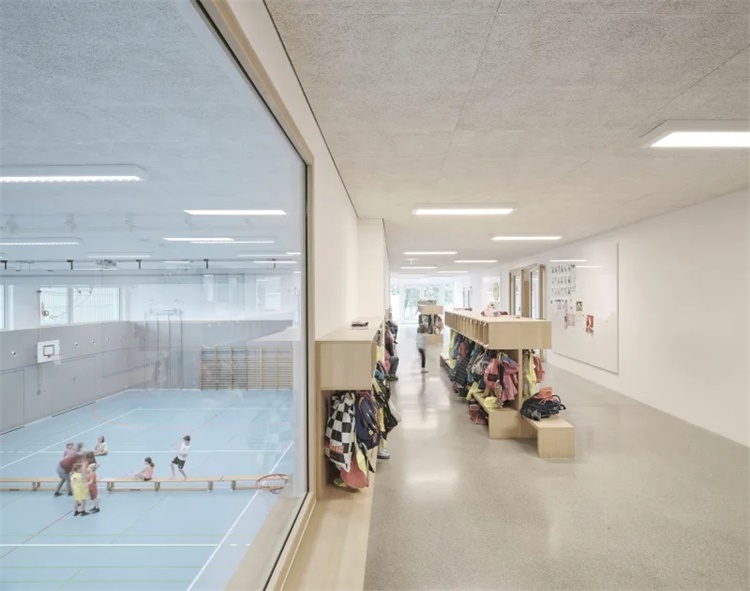 幼儿园、小学、健身房和活动场地等不同功能被分配到明确定义的空间。这些空间通过中心位置的中庭和庭院相互作用,倡导社区生活。在独立区域内可根据需要生成公共区域,避免不必要的走廊。