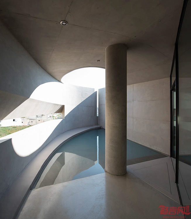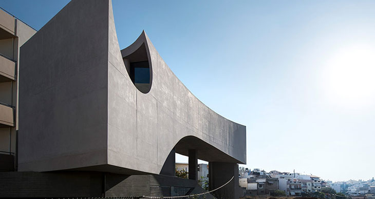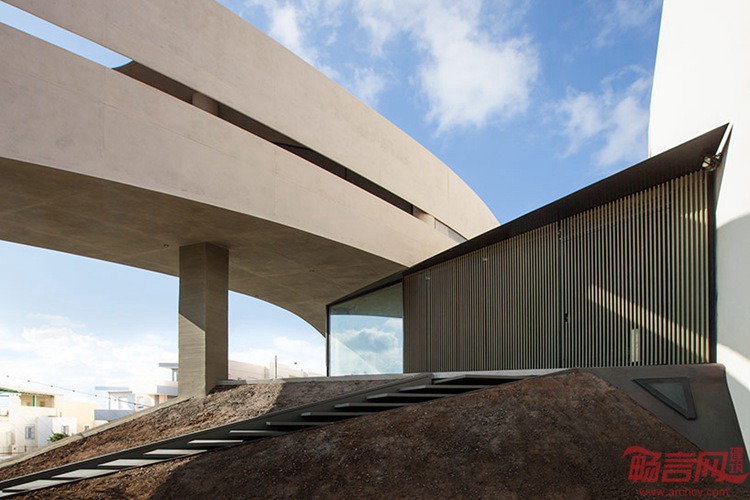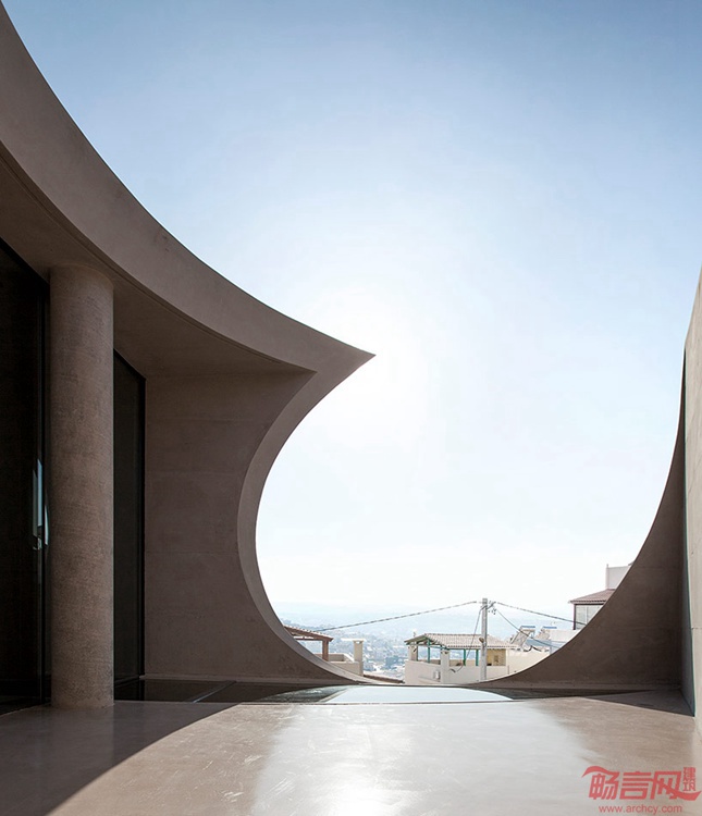 Tense工作室完成了位于Crete的一座住宅设计。项目俯瞰大海和大半个城市,包含坐北朝南的四层,展现了材料,开窗和石墙的动态混合处理。建筑带有流畅的混凝土外立面,回应了太阳在半私人室内空间中展现的光影效果,圆形的开窗透露了附近的景色。
