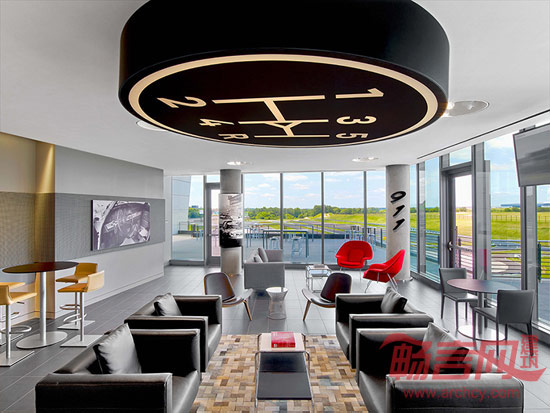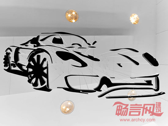 室内设计也有很多特别之处,其中,大厅内悬挂了许多黑色片状物,从正下方往上看,正好形成一辆汽车的轮廓。