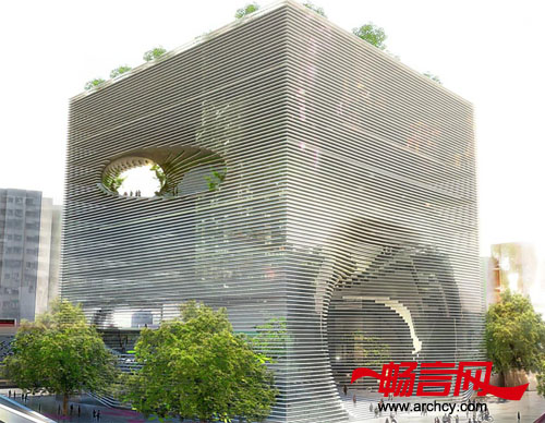 此项工程是一座令人注目的57米宽、57米高的立体式建筑,大楼内部由许多动物形状的空间自然隔开。这样,就使行人能在楼中自由穿梭。而且,一条盘旋向上的走廊能穿过阳台,然后能够到达楼顶阳台。从远处看,这个凹形的阳台宛然一把喇叭向上的贝丝,十分有美感。