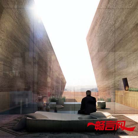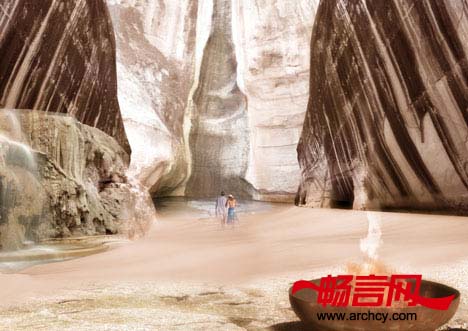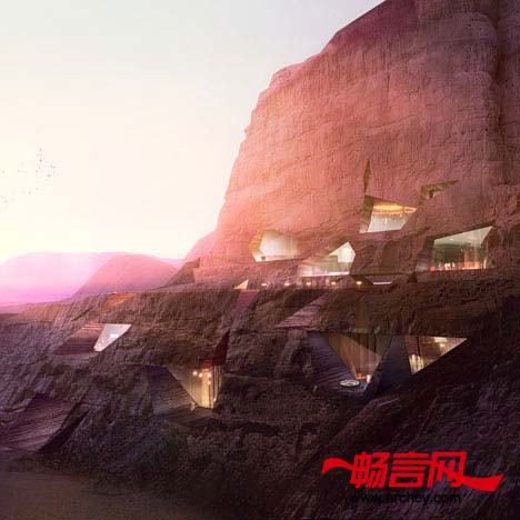 Oppenheimd的中标方案致力于用一种不同于社会上普遍的自然建筑开发方式来打造这些度假旅店,即综合考虑这里的自然特色 --- 一个沙漠与峭壁相汇处的神奇峡谷,来综合设计。