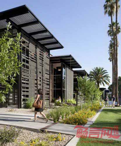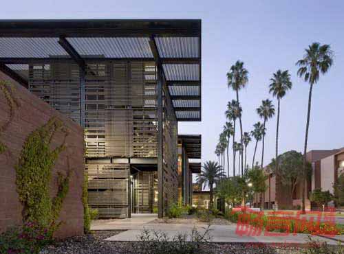亚利桑那州立大学健康服务中心设计旨在定义一个健康、非医疗、亲切友好的环境。项目包含拆除部分已有设施,原有设施改造,以及新翼型结构建立。设计师希望创建高效友好的内部环境,建筑融入了大学历史悠久的棕榈大道环境中。