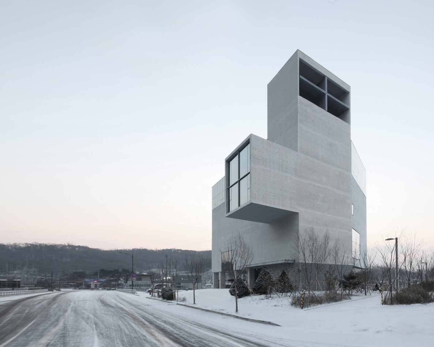 RW混凝土教堂坐落距离首尔西南方向的Byeollae新区。场地有一种中庸氛围,景观介于人工和自然之间。作为城市肌理的一部分,教堂由基于简约形状的连贯空间构成。混凝土既构成建筑结构,同时是建筑的饰面材料,成为贯穿整个项目的属性。混凝土是一种坚实材料,紧固地抓牢地面,与抽象主义形成对照。混凝土体现宗教价值的有形性,隐喻宗教在不可预知的当代社会的稳定性。