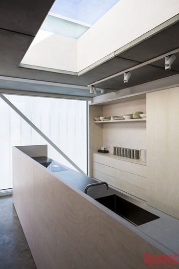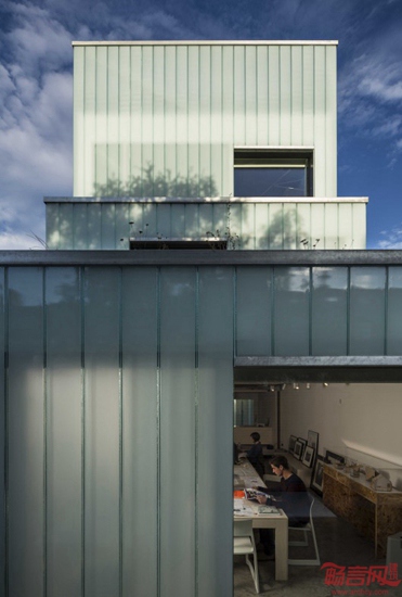 项目位于南伦敦Brixton,是一座三层住宅。建筑特点拥有半透明的玻璃板墙壁和向街道悬挑的上层楼面。一层空间宽敞,是其设计者Carl Turner工作室的办公地点。设计师Carl表示,住宅很灵活,尽管一层现在是工作室,但如果我们搬离,恢复成住宅没有丝毫问题。建筑二层容纳了开放式起居室和餐厅,不过Carl认为,只要一层变成起居室,二层可以轻松的变成卧室。框架式结构保证了灵活的调整可能。