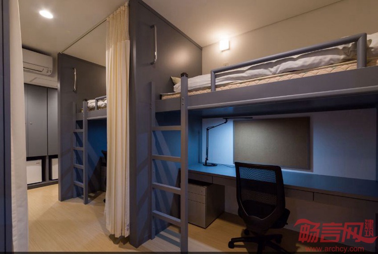 SUMO工作室设计了位于日本千叶的I学生公寓。由于日本面临着人口衰退,各所大学试图吸引长期或短期国际学生的青睐。这个学生公寓项目面向140名留学生,为这些文化、经济背景多样化的人群提供住宿环境。项目设有共用公共空间和合住房间,房型包括一室和两室,带有独立浴室,另外还有带有共用浴室的四人宿舍。