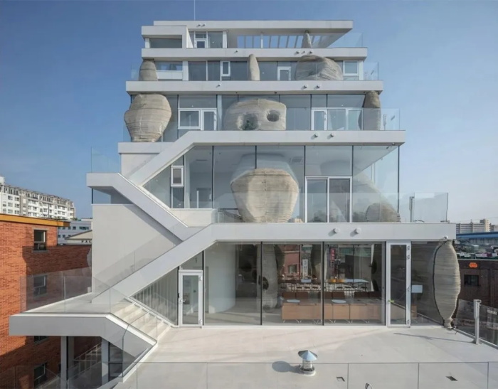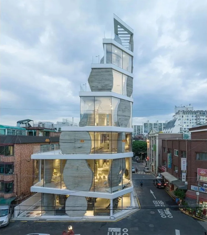 Loston 将巨大的岩石融入其建筑结构之中。该建筑对首尔显著的环境特征——山脉——进行了重新诠释,填补了公共空间匮乏以及与自然缺乏联系的空白,为休闲娱乐和文化活动提供了一个开放空间。