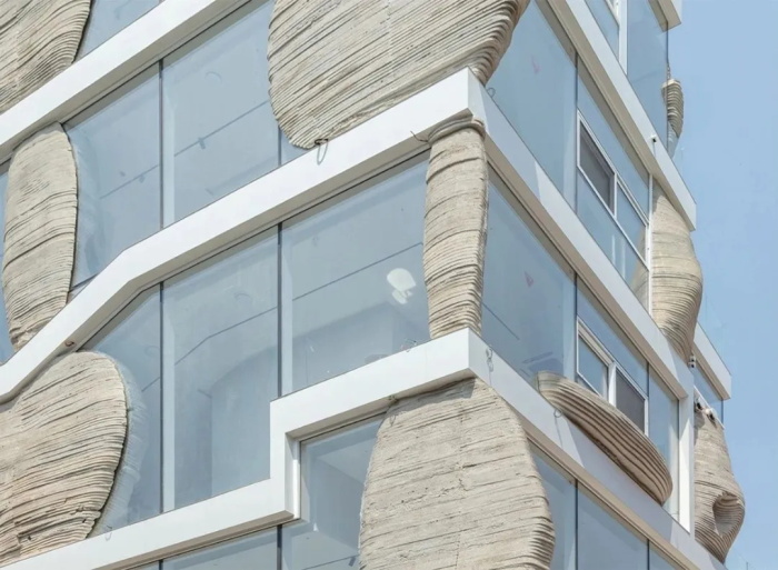其设计遵循必要的日照采光规定,并最大限度地提高了容积率,从而形成了阶梯式露台结构,该结构形成了一个类似山峰的建筑体量。每一层露台都与通往街道的外部楼梯相连,确保了公众的可及性。内部空间采用无梁楼盖结构,没有额外的水平构件,玻璃幕墙镶嵌在岩石柱之间,街角处设有倾斜的楼板,每层还设有供公众使用的露台。这些元素共同与周边区域形成了多维且直接的关联。