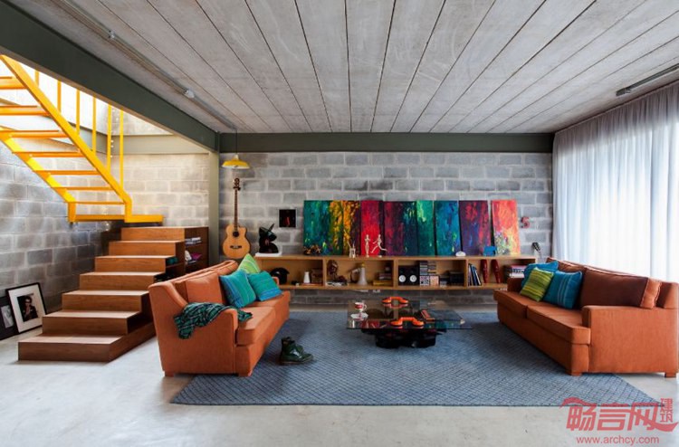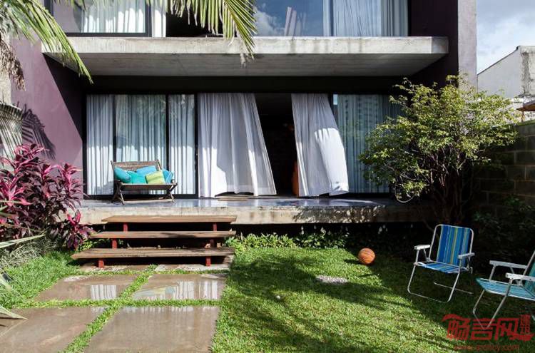 项目坐落于Vila Madalena地区的中心,这是巴西圣保罗当地的艺术家、设计师云集的波西米亚区。项目目的是考虑到业主的生活方式,并兼顾私密性和家庭聚会活动的功能。因此,设计方案构想为将建筑设立在场地后方,尽量多地把空间留给庭院。方案利用了场地景观和外部道路条件。轻质金属框架系统和预制混凝土板使主立面跨度达8米长,充分利用场地条件。