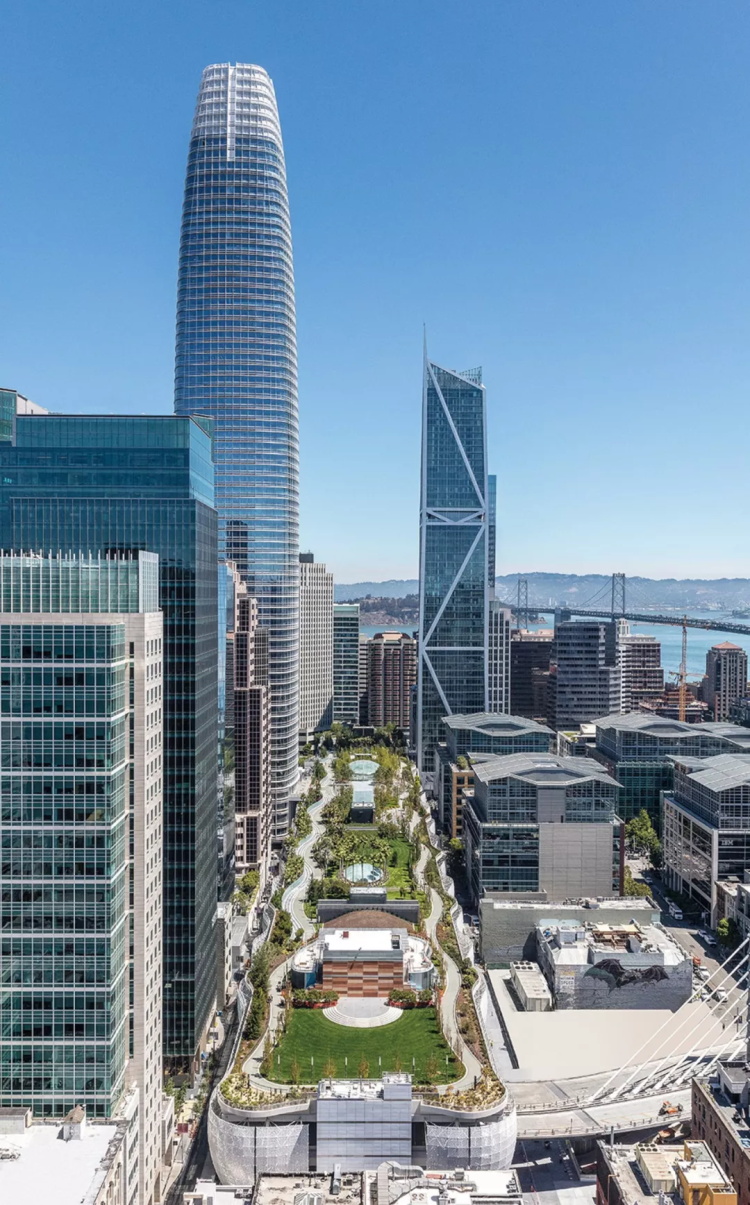 Salesforce客运中心和塔楼项目不仅示范了大规模基础设施如何经由人性化的设计,成为开放友好的共享场所,迎接不同类型的使用者,也体现了市政开发和私营企业的结合如何为高密度中心城区更新做出积极贡献。新的办公开发项目大多位于郊区,这导致员工从更适宜居住的中心城区迁出,Salesforce项目却在中心城区投资,为更高、更密集、更可持续的未来提供新范式。