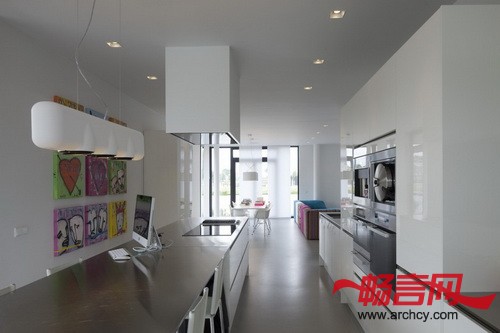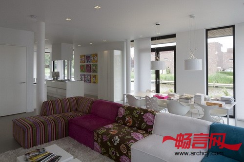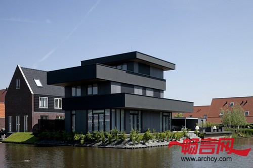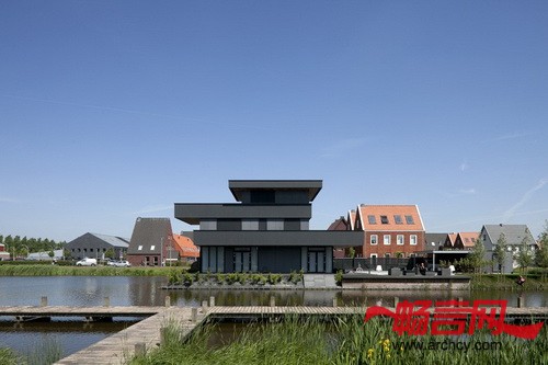 篷堡别墅3由鹿特丹BBVH建筑事务所设计,位于海牙市的篷堡区(Ypenburg)。别墅有着黑色的幕墙,共三层,里面是十分宽敞的室内空间,它的色调与幕墙恰恰相反,使用了明亮的白色。此外,在别墅的三层空间上,每层都由一个悬臂阳台,这使这个横向的别墅更加亮眼。通过更加突出周围自然景观的美感,别墅成功的也让自己在周围环境中脱颖而出,十分亮眼,让路过行人感受到这座当代建筑之美。