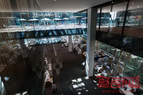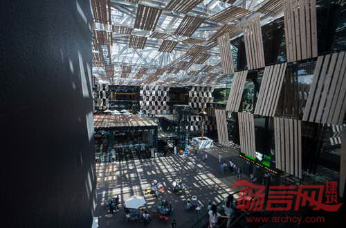 建筑层面上,空间绝非刻板的立方体,而是采用了动态木板装饰的空旷温暖空间。宽敞的开窗法营造出通透明亮感,同时表达出活力紧凑城市的层次概念。除了当地政府使用的会议室,建筑还包含12000平方米的混合使用功能的店铺、餐厅、银行和露天广场。