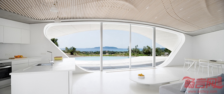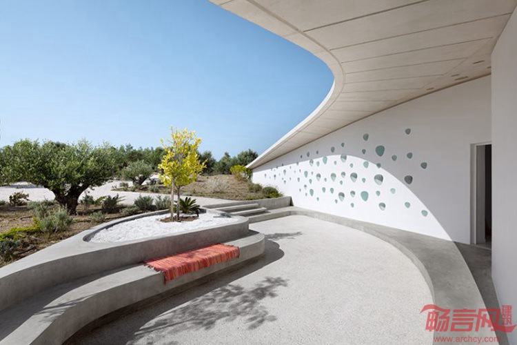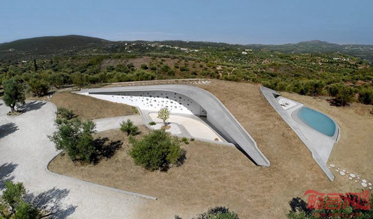 LASSA工作室完成了希腊Ypsilon别墅设计。这是一座避暑住宅,建筑俯瞰一片橄榄树林。建筑带有Y型绿色屋面,同环境合二为一,成为露台的延伸。坐落于Peloponnese南部的家庭住所包含两大部分,分别是涵盖三个卧室和两个浴室的私人区,包含厨房,客厅和连通三个临近庭院的面向南面的公共区。