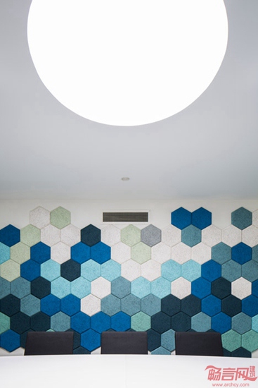 Johan Sundberg建筑事务所设计了瑞典Lund的一座办公楼。项目采用穿孔金属板营造外立面,设计师旨在“打破工业场地平庸的形象”。这一增建设施提供了五座办公楼和会议中心,业主是Lund市的Byggom建设公司。建筑仅有一层,同已有办公楼相连,外表覆盖了折角钛金属覆面板。这些穿孔板使阳光穿过,进入室内。穿孔板颜色多样,使原本平淡无奇建筑外形变得活泼起来。