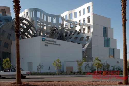 克利夫兰卢-鲁沃脑健康中心在周五正式开放。它是脑部退化疾病的顶级研究中心。Gehry之所以同意设计此建筑,是因为他与该建筑的创立者Larry Ruvo有着同样的痛苦经历:他们都因脑部退化疾病而失去至亲。Ruvo的爸爸因老年痴呆症去世,而Gehry的分析师妻子死于亨廷顿氏病。同样的痛苦使这两个人决定在沙漠地区共同设计一个世界顶级的脑部研究中心。凭借该诊所的优秀声誉和Gehry的名人效应,他们确信这个项目会取得圆满成功。