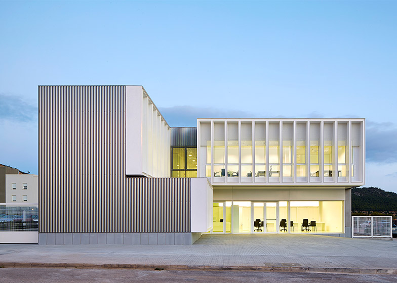 RipollTizon公司设计了位于西班牙马洛卡工业区的办公楼。项目多数立面采用波纹钢材料,在一个面向庭院的角落运用玻璃墙面,为员工提供优美的视野。项目坐落于巴利阿里群岛西南的Calvia镇,为Hidrobal垃圾处理公司提供新办公和客户服务空间。