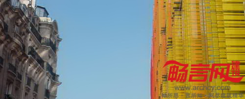 巴黎Novancia商业学校建于1908年,AS建筑设计工作室完成了对它的改造和增建工作。改造方案忠实地契合了原有建筑的风格,完整保留了原有的砖块构造、飞檐、马赛克结构,同时使用增建部分赋予学校全新面貌。原先面向街道的是一面粗粝的砖石墙面,设计师用4102片玻璃百叶构成的新立面进行了替代,玻璃运用了不同色调的黄红两色,不仅呼应了原建筑的色彩,同时与Bourdelle博物馆协调一致。电控的玻璃立面从远处看有不透明效果,但近看能看出实际是透明的,通过不停地调整玻璃旋转角度,能够对楼内温度进行调控,降低玻璃产生的强光以及日照热辐射。