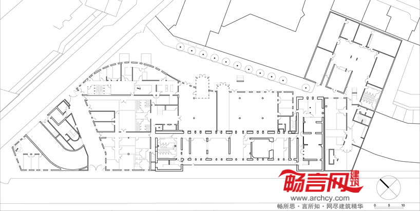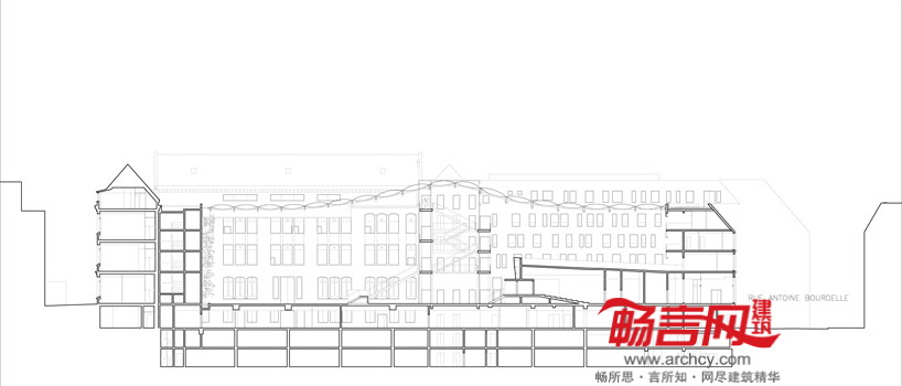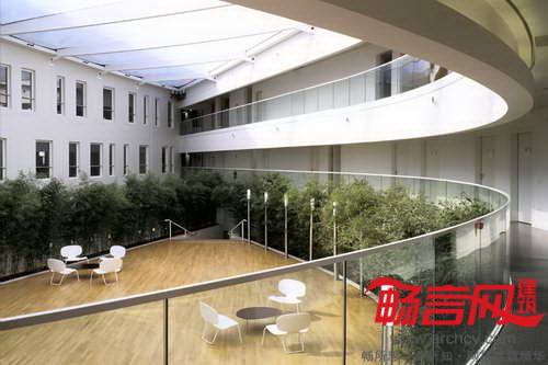由于受到当地建筑缩进法规的约束,建筑的场地属于不规则形,新建筑结构最大程度地利用了场地,开辟出巨大的中庭,将两种风格迥异的建筑呈现在人们眼前,并创造出通达的流通条件。ETFE薄膜板能对热量进行控制,使柔和的非直射光照向室内区域。另外,所有教室和办公室都有朝里的窗户。项目还包含了三个露天剧场、可容纳260个座位的礼堂、资源中心、录音室和咖啡厅。所有设计细节均符合新近通过的法国建筑物无障碍通行法规。