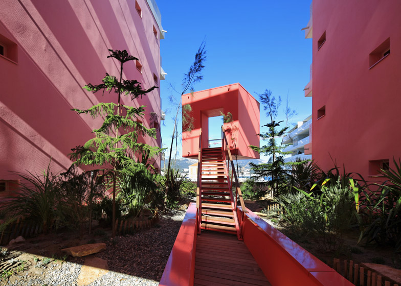 Pietri设计了位于法国南部的“红线”公寓楼,建筑设有混凝土墙面和屋顶公园。项目根据围绕中央花园的红色油漆作品命名,两座建筑涵盖了59套不同大小的公寓。项目一层设立了停车场和商业设施。屋顶包含狭长的绿化带,提供俯瞰两座楼房间景观的视野。
