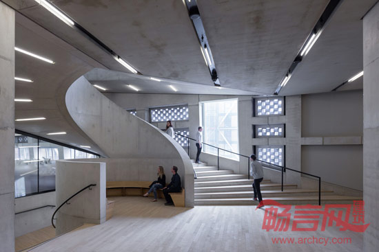 新馆建筑以独特的金字塔形状进行空间布局,其混凝土结构以戏剧性的曲线向上延伸。建筑外立面以全新的方式效仿了发电塔的砖砌外墙,外墙由33600片砖块组成的带孔格架包覆,这样独特的外墙既可以在白天起到滤光作用,又可以在夜晚透出光线。