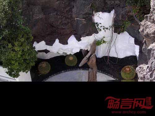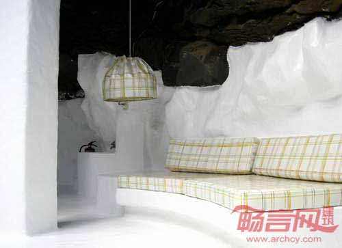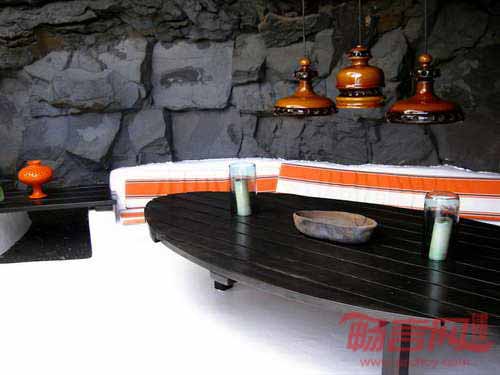 建筑师非凡的地下住宅不仅是对迤逦的海岛风光的敬意,同时也表达了对于艺术创造的热爱。住宅中的一些房间建造在自然的火山“泡沫”中,形成了适合摆放软椅和座位区的圆形前厅。每个房间通过上方熔岩泡沫爆裂形成的天窗,达到了自然采光的目的。