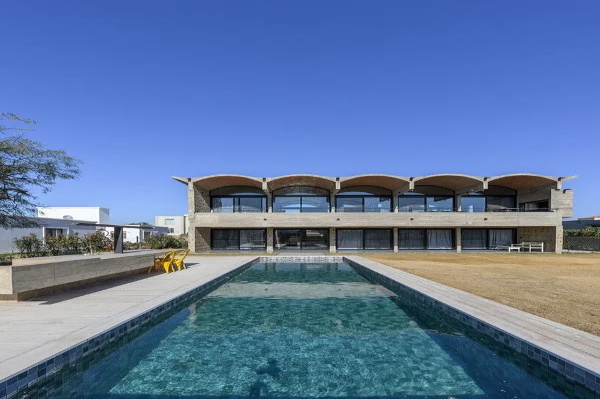 建筑师克里斯蒂安·南泽尔(Cristián Nanzer)设计了位于阿根廷科尔多瓦西南部郊区住宅区内的R&C住宅(Casa R&C)。摄影师冈萨洛·维拉蒙特(Gonzalo Viramonte)拍摄了该建筑作品,住宅的核心是五条平行的拱形带,每条宽3.45米,长15.50米。该结构元素形成了主要空间,形成了住宅的主要特点。拱形屋顶如同遮阳伞,延伸至南北立面,创造了室内与室外之间的过渡空间。屋顶下,R&C住宅的双重特性:坚固的巨石混凝土基座牢牢固定了底层,而拱形的上层则强调轻盈、透明和广阔的视野。
