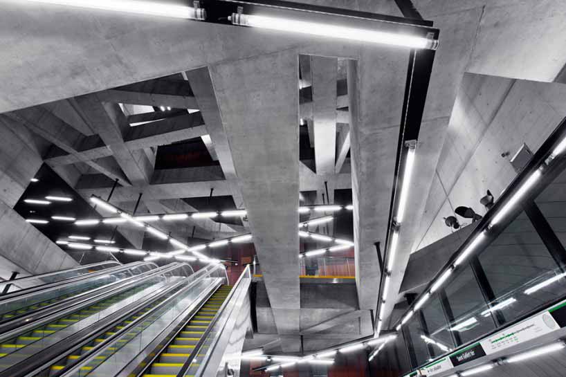 SPORA建筑事务所认为,高质量的建筑将鼓励居民使用公共交通工具。因此,设计方案展示出与城市历史氛围截然不同的现代感,营造出别具一格的地下空间。两个地下空间都由钢筋混凝土梁支撑。