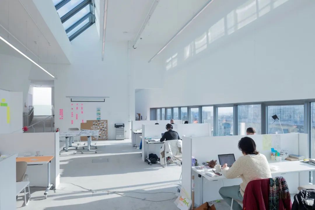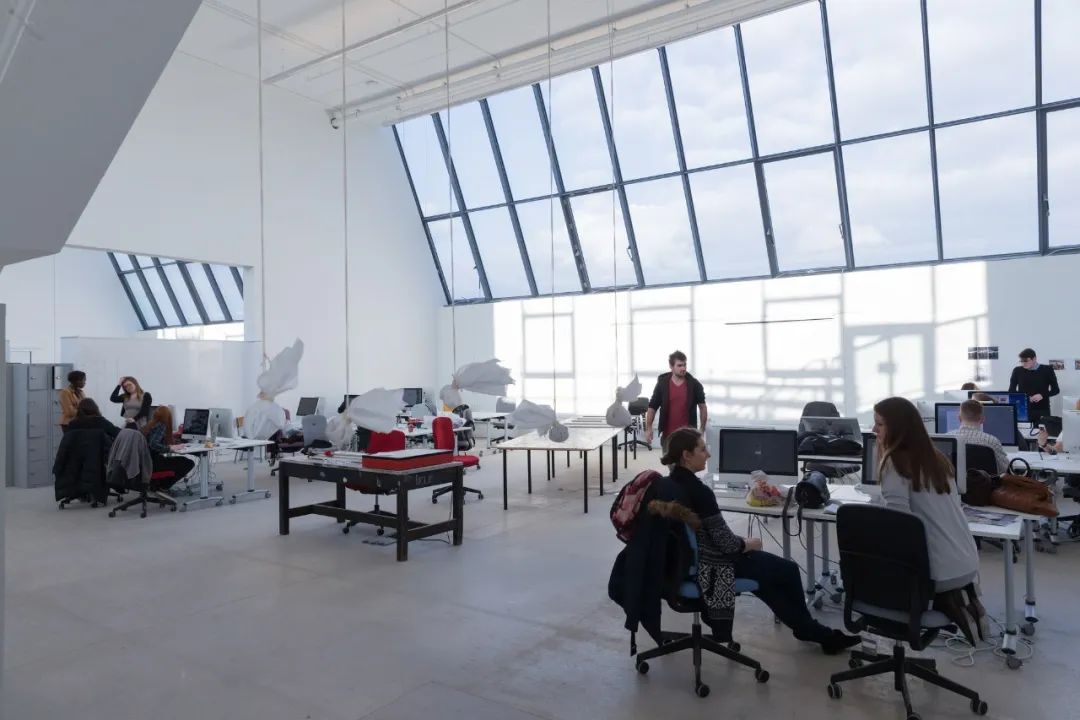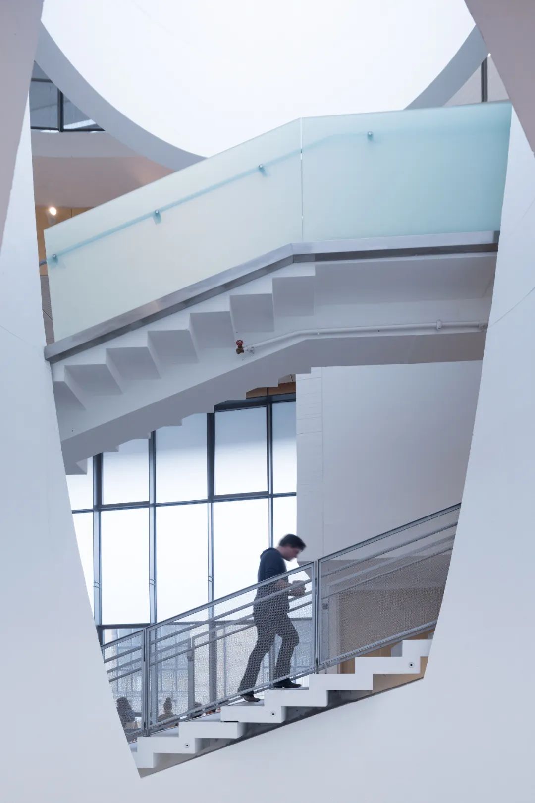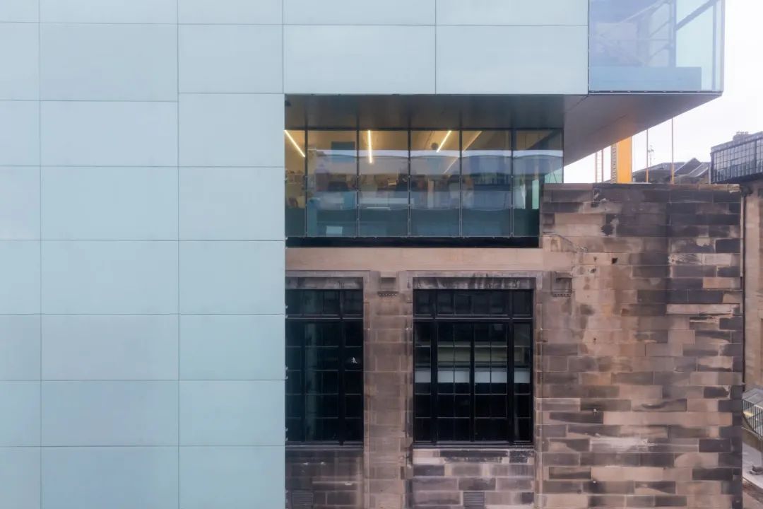 由 Steven Holl Architects 设计的里德大楼(The Reid Building)作为格拉斯哥艺术学院的新成员,与 1909 年由查尔斯·雷尼·麦金托什(Charles Rennie Mackintosh)设计的主大楼形成鲜明对比。两栋建筑间有着“共生关系”,并且它们补全了彼此的整体感受。里德大楼以半透明材质为主体,并以此与麦金托什大楼中的砖石结构成了强烈对比。由此,大量的光线透过玻璃进入室内,微妙地展示了城市中央的校园生活体量,同时也体现了艺术的前瞻性。