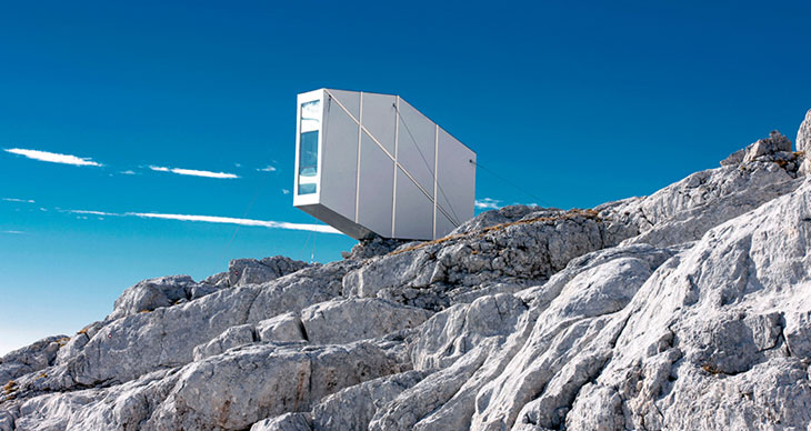 OFIS事务所设计了斯洛文尼亚Kanin山顶的冬季木屋。这一紧凑的住宅能容纳九位登山者,免受严酷极端的冬季气候,避免因暴雪和滑坡造成的危险。这一项目仅仅占据了山顶一小块场地。设计师和结构工程师合作,开发出这个具有悬臂结构、独立木质外壳的住所。