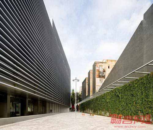 社会保障部办公楼项目位于巴塞罗那Ciutat Vella区。建筑外形是一个受半透明金属网保护的玻璃立方体。