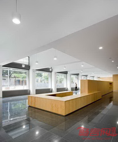 建筑由三个交叠结构构成,透明的一层空间利用了场地几何特性,与其所处的公共空间构成了紧密联系。