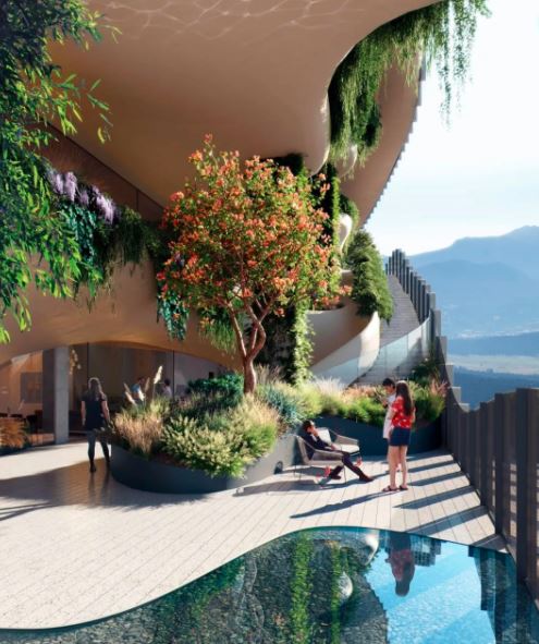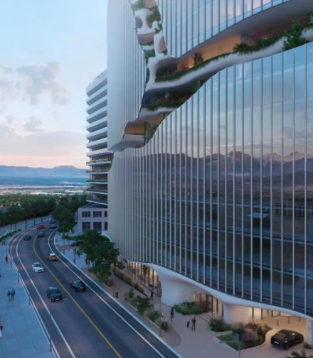 “垂直峡谷”紧邻丹佛市中心,位于城内的艺术街区 River North (RiNo)。RiNo 社区里拥有大量从年代久远的传统仓库、厂房改造而成的画廊、餐厅、酒吧,是城中最具艺术气息和活力的街区。项目占地 2620 平方米,共16层的建筑将提供 187 户居住单元。朝落基山脉的西北向建筑立面,如同大峡谷般从立面上裂开,横跨 10 层楼。“裂缝”之处是布满耐旱景观绿植的公共空间和居住单元阳台,为 RiNo 社区和丹佛市的城市天际线注入了有机自然和活力,也让居民面对原始远山自然的同时也能欣赏城中的人工自然。