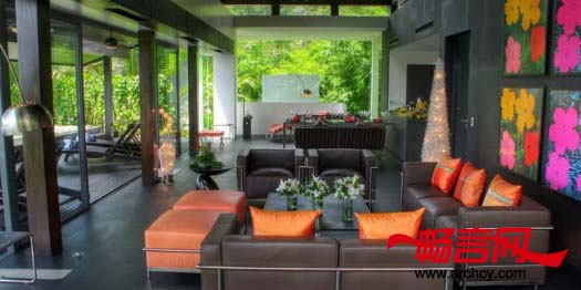 具有阴阳哲学理念的室内设计将整座建筑分为生活区,卧室(4间),大厅娱乐区域,敞开式厨房,餐厅和浴室等部分。内部陈设的现代家居简洁利落,具有典型的极简主义风格。别墅的外部设计也讲究阴阳互补,融合了多种经典的、线条柔和的泰式建筑和热带花园的元素。大厅休闲室拥有极佳的视野,从这里,不仅能看到安达曼海的壮美景色,它还与17米长的泳池平台紧紧相连。对于来泰国普吉岛度假的人们来说,这座漂亮的别墅是可以放松身心的极佳住所。