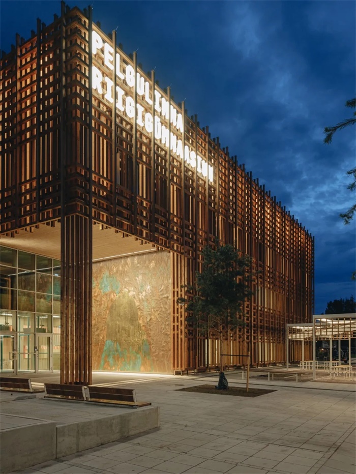 该建筑位于梅里梅察公园森林的边缘——城市空间和自然环境的中间地带。建筑、景观和森林之间相互交融,从而形成了一个整体。设计团队采用木材作为立面材料,木材随着时间的推移而不断变换着颜色和质感,建筑与自然之间的对话就这样悄然进行。