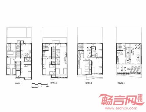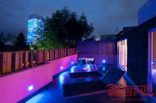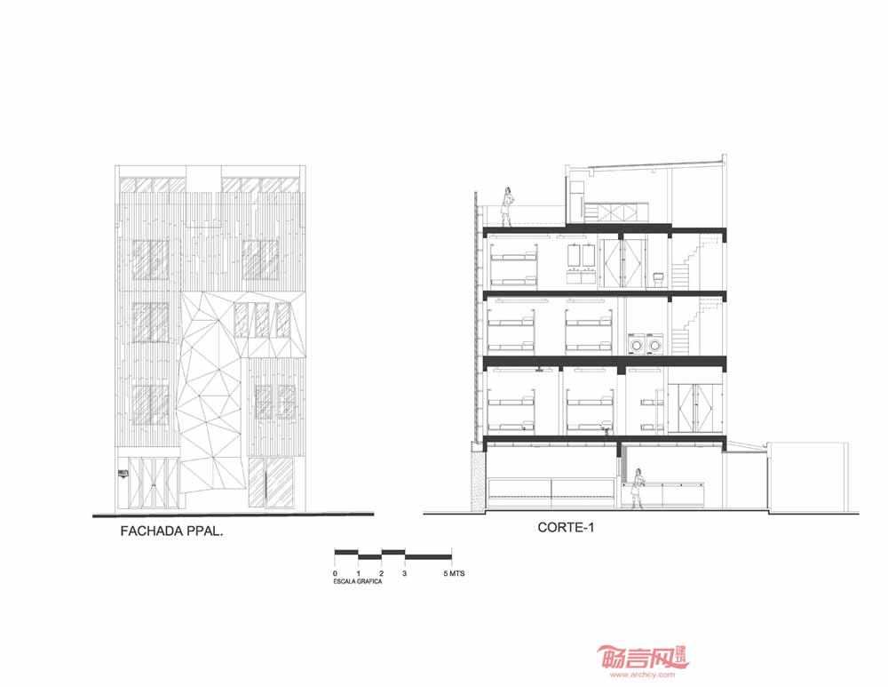 旅馆立面具有迷人几何造型,配合运用热情的品红色,视觉效果类似墨西哥式糖果包装纸;为了达到整体均衡,建筑另一侧使用了宁静温暖的重蚁木格架。
