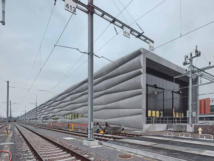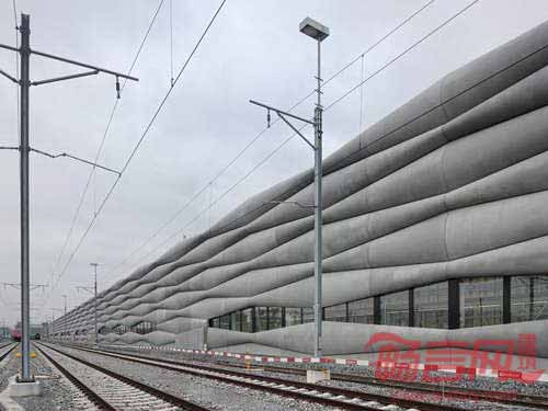 EM2N建筑事务所给位于瑞士苏黎世的铁路设施项目添加了纤维水泥覆层,起到了波涛涌动的活跃视觉效果。整体项目基于场地限制和工程设计,在技术上达到合格标准。然而,为了给乘客一个良好印象,长度较长的建筑南立面需要在表面效果上进行改造。外立面设计契合了齐整的室内区域风格,采用气囊板模块化材料,起到了3D立体式效果。服务设施楼可容纳长达400米的火车,保留所有车厢,无需拆卸。由于体量巨大,建筑对来到苏黎世的游客具有较强烈的视觉影响力。新覆层实现了独特的光影效果,为增建设施带来活力。