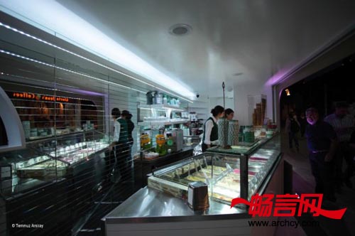 这样,随着不同格调的变换,就形成了一种顾客与商店不断交流的活跃氛围。因此,你不禁要问:一个意大利的格拉提商店如何与土耳其公众场所相融合的呢?这家焦利蒂商店是如何通过建筑与公众场所的融合,而达到商店与大众的活跃互动的呢?其实,这家第一次走出罗马、走出意大利国境的商店,将代表着意大利传统的商店甚至生活方式在异地街道上和公众场所中生存的典型。它不仅是在销售格拉提冰淇淋,更是在推销意大利的传统文化,是一项长期的社会交流活动。