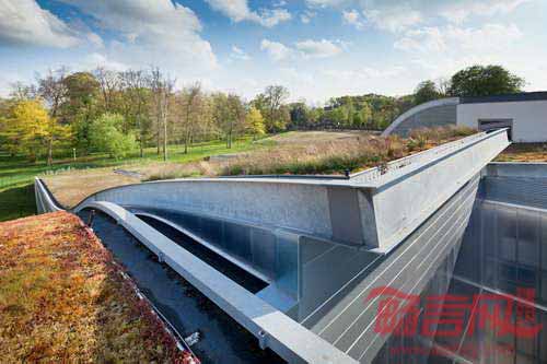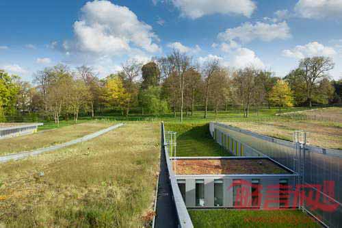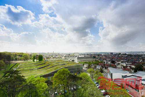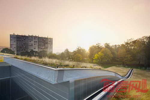 Archi5建筑事务所设计了位于法国南部城市鲁昂一块废弃场地上的Marcel Sembat职业中学。学校提供汽车与车辆力学教育课程。项目简明要求是建筑需拥有高天花和大平面。项目尺度意味着必须融会景观设计、建筑以及城镇规划。场地介于公园及城市之间,设计考虑到背景环境,设置了覆盖学习室的绿化屋面。建筑从场地角落起始,流畅线条和坡道自然地融入景观。屋面设计使室内光线充足的同时,不会受暴晒影响。