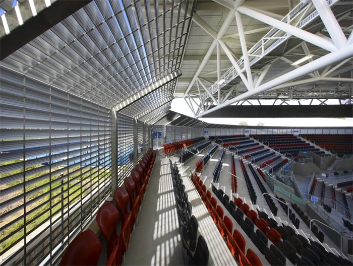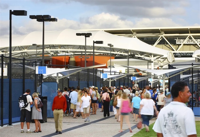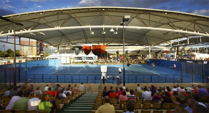 这座性价比极高的顶棚是POPULOUS打造的球场亮点之一,它为球员和观众均提供了遮护,同时巧妙地还原了户外环境和自然通风,减弱了阳光对球场中央区域的直射,因此该球场仍被各国际网球组织认证为室外球场而不是室内球场。