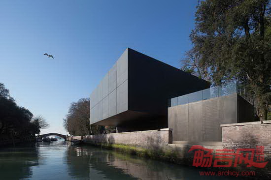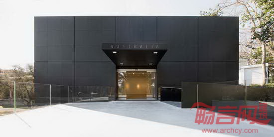 墨尔本Denton Corker Marshall事务所设计了2015年威尼斯双年展澳洲馆。这一覆盖花岗岩的场馆是场地上首座21世纪建筑,替代了此前由Phillip Cox于1988年设计的已有建筑。项目构想为容纳在黑色盒子中的白色结构,方案旨在体现单一、现代的审美主义,以雕塑般的外形融入双年展公园景观环境。