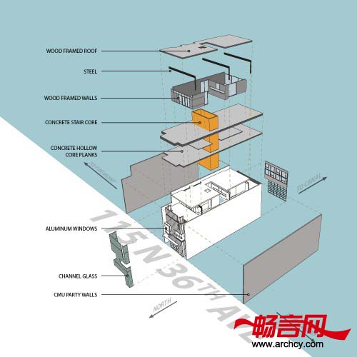 嵌有玻璃窗的零售商店和办公区域面朝街道,这样就达到了功能区域的合理利用 --- 购物者可以便利的到达商店,而办公者休闲时可以看看窗外的景色。通过将大楼的建筑面积达到最大化,并将其建为三层,达到了对建筑地块的高效利用。这个800平米的开放式建筑完全吻合了客户的各项需要,让他们在这里能够舒适的生活。此外,这里交通十分便利,居住者可以通过步行、骑车、划船、公交等各种方式到达想去的地点。使用的建筑材料也十分巧妙,它不但使115大楼能够独具特色,又能与周围建筑相互融合。