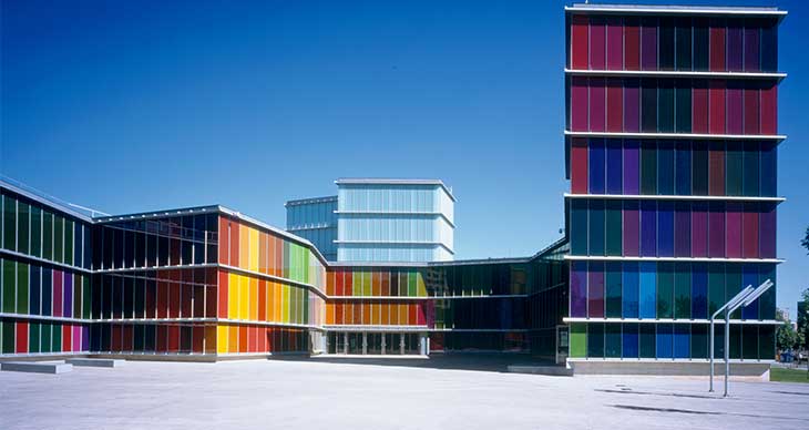 卡斯蒂利亚当代艺术博物馆(MUSAC)从视觉上展现了人类和自然之间的关系。项目从艺术中汲取了场景,同当年罗马地理测量员描绘城市的乐观主义态度别无二致。建筑包含一系列独立自主的空间,可承办不同规模和种类的活动。每个边缘不规则的房间构成连贯但空间各异的空间。外部的公共空间采用了凹形构造的大块彩色玻璃,对莱昂大教堂致敬,后者是体现人与城市和谐关系的典范。