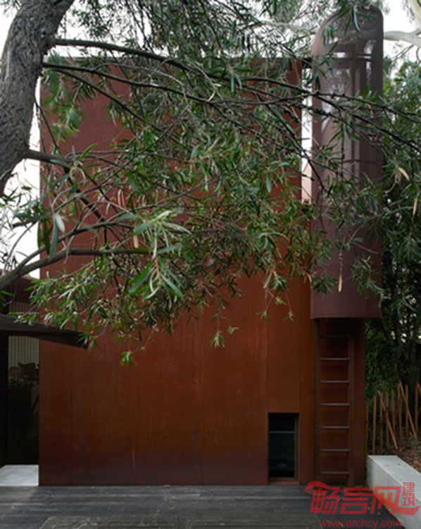 这座由Sean Godsell设计的一室户住宅具有令人屏息凝神的美丽,仅有24平米、一个房间可作为卧室、书房或图书馆,包括一个屋顶露台。这座建筑从外观看是一个铁锈色立方体,6.5米见方,坐落在建筑师已有住宅的花园之中。
