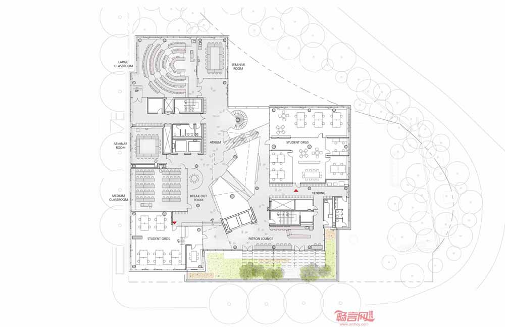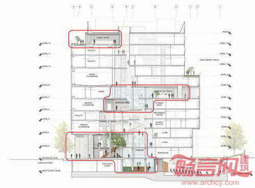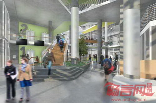 由于项目场地与巴尔的摩Penn火车站相邻,同时与Jones Falls高速公路毗邻,建筑成为通向校园和市区的醒目门户,展示出大学对于城市复兴和发展的责任感。